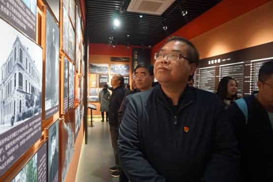 在故居大厅,机械工程学院全体党员在党委书记覃波的带领下庄严地举起右手,面对鲜艳的党旗重温入党誓词。我们一定会传承红色基因,庚续红色血脉,坚持立德树人,做铸魂育人的新时代教育工作者,为党育人,为国育才。