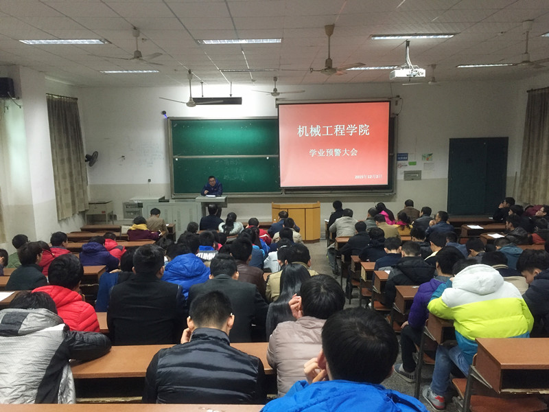 2月2日,机械工程学院在南校区1教313教室召开学业预警大会,此次大会邀请到学院党总支书记谢骐、副院长卿上乐、副书记李儒峰,作为主讲人,学院缺失学分的预警学生及其班主任和学办老师参加。