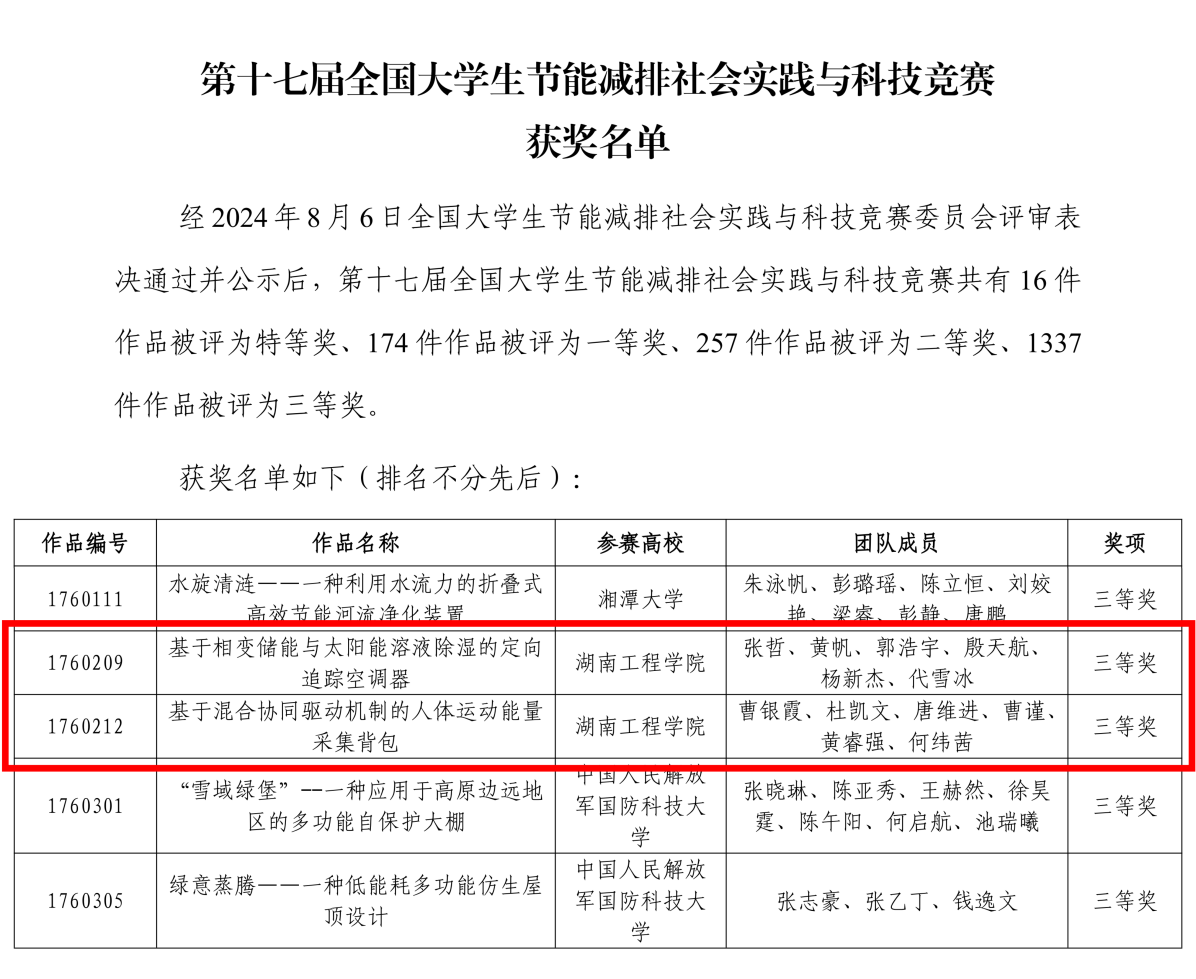 喜报!机械工程学院学生在全国大学生节能减排社会实践与科技竞赛中获奖