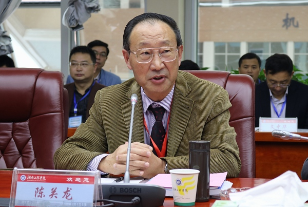 会议分两个阶段进行,第一阶段由易兵主持,校长刘国繁致辞,他在致辞中代表学校对全国工程教育专业认证专家来校考查和指导工作表示热烈欢迎和衷心感谢。他介绍了学校的基本情况,重点就我校工程教育面向行业企业、以学生为中心、以产出为导向,紧密对接市场需求进行教学模式改革的情况和取得的成绩进行了介绍。刘国繁表示,开展工程教育专业认证,有利于我们构建工程教育与行业企业的融合机制,增强我校工程教育人才培养对产业发展的适应性;有利于我们进一步推进学校工程教育改革,完善人才培养模式,进一步提高工程教育质量。他表示,此次认证对机械设计制造及其自动化专业和学校工程教育有着非同一般的意义,全校上下高度重视,全体师生将以饱满的热情、务实的工作态度认真迎接专业认证现场考查。