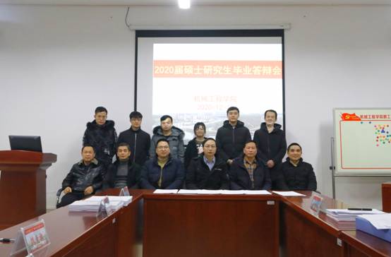 12月18日下午,机械工程学院2020届硕士研究生学位论文答辩在机械楼308会议室举行。湖南科技大学博士生导师戴巨川教授担任答辩委员会主席,湘电风能有限公司高级工程师阳雪兵、湖南工程学院科技处处长黄中华教授、工程训练中心主任傅彩明教授、机械工程学院院长魏克湘教授、吴安如教授担任答辩委员会委员。
