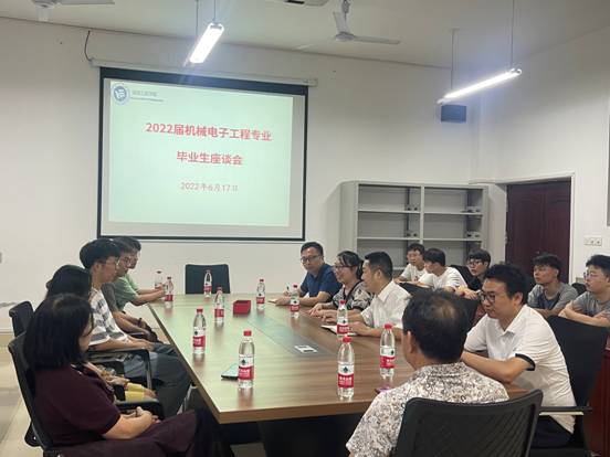 6月17日下午,机械工程学院2022届机械电子专业毕业生座谈会在机械楼308举行。机械工程学院院长陈国强、副院长程玉兰、邹鸿翔、机电教研室主任王少力、机电教研室老师以及机电专业毕业生代表参加了会议。会议由机械电子教研室主任王少力主持。