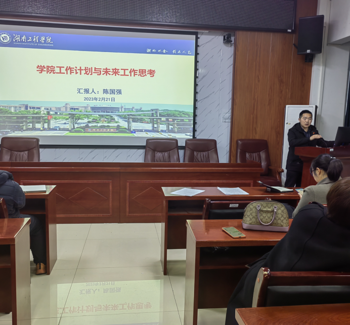 院长陈国强以“学院工作计划和未来工作思考”为题从师资队伍建设、学科专业建设、学科平台建设等方面做汇报。他动员全体教职工以饱满的精神状态,理清工作思路,上下齐心,以扎实的工作作风投入到专业认证、校企合作、文化建设等重点特色工作中,共创学院新未来。