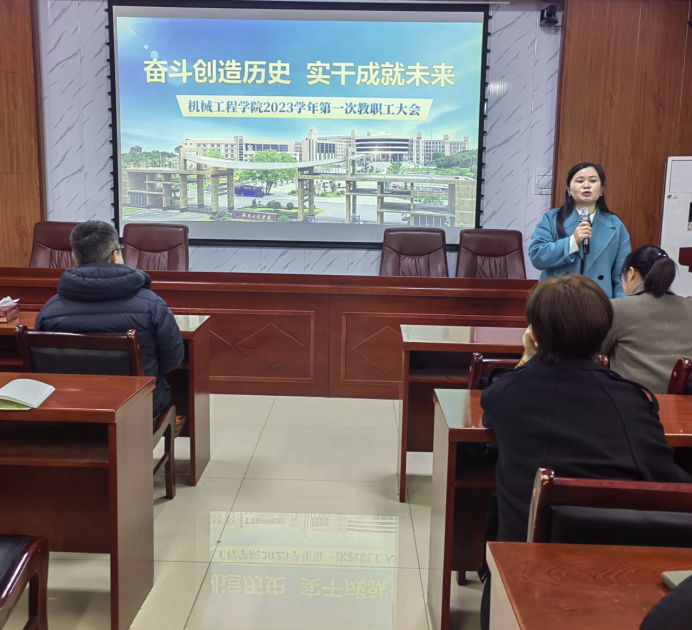 奋斗创造历史,实干成就未来,机械工程学院于2月21日下午在机械楼312会议室召开2023学年第一次全体教职工大会。
