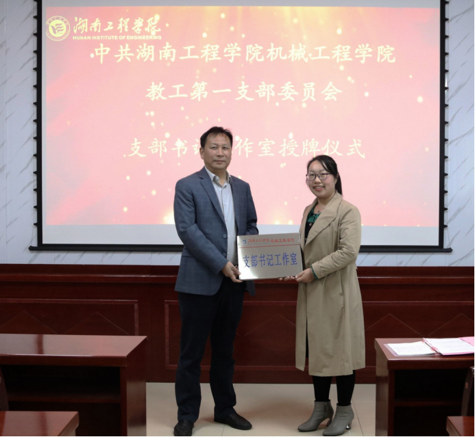 2022年湖南工程学院“对标争先”建设示范计划项目批准成立机械工程学院教工第一党支部“双带头人”书记工作室。3月14日下午,机械工程学院在机械楼312会议室举行支部书记工作室授牌仪式。校党委委员、副校长魏克湘,学院全体院领导及全体教工党员参加活动,学院党委书记覃波主持会议。