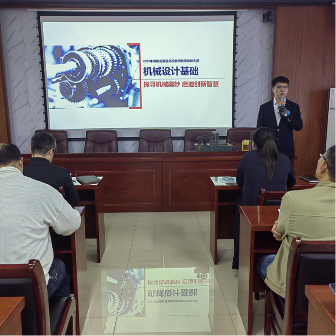 为深入贯彻落实党的二十大精神,全面落实立德树人根本任务,落实习近平总书记强调的“守好一段渠、种好责任田,使各类课程与思政课同向同行、形成协同效应”,4月11日下午,机械工程学院在机械楼312会议室组织了一场课程思政示范课,学院全体教职工参加。本次示范课主讲老师是我院在2023年湖南省高校教师教学创新大赛一等奖获得者向锋。本次活动也是机械工程学院教工第一党支部“双带头人”书记工作室揭牌后的又一次关于教师教学竞赛的活动。