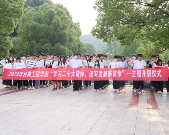 为推动学习贯彻习近平新时代中国特色社会主义思想主题教育走深走实,牢牢把握“学思想,强党性,重实践,建新功”的总要求,激励机械工程学院全体师生,以焕然一新的面貌、昂扬奋进的姿态开启新征程、做出新成就,5月15日清晨,机械工程学院在主校区知行广场举行以“学习党的二十大精神,谱写发展新篇章”为主题的升旗仪式。学院学办主任曾依依、全体辅导员、学生党员、学生干部及2022级新生参加。仪式由党务专干刘珈黎主持。