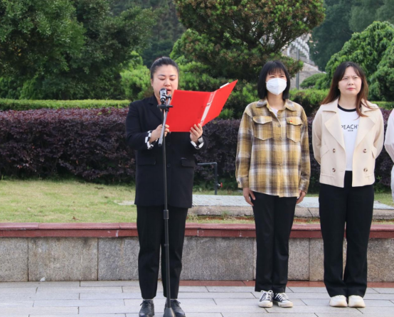 仪式最后,在鲜红的五星红旗下,全体学生党员在曾依依的带领下高举右手重温入党誓词,牢记初心使命,坚定理想信念。这不仅是一份荣耀、更是一份信仰。
