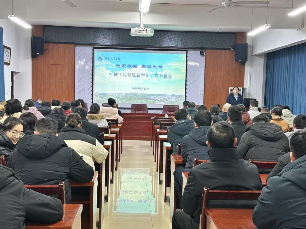 2月23日上午,机械工程学院在机械楼312会议室召开2025年春季新学期工作布置会。校党委委员、副校长魏克湘出席会议,学院领导班子及全体教职工参加会议。会议由学院党委书记陈国强主持。